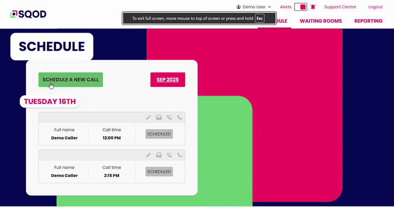 To schedule a new call, simply select the green 'Schedule a new call' button, to be offered call details for completion. The following details will need to be entered:-